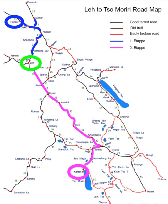 Eine spannende Fahrt entlang des Indus Flusses bis ins kleine Dorf Korzok am Ufer des Tso Moriri, einer der schönsten Seen im Himalaya.