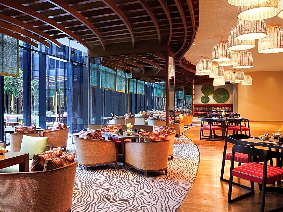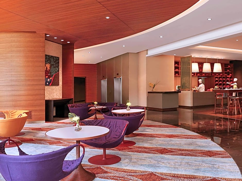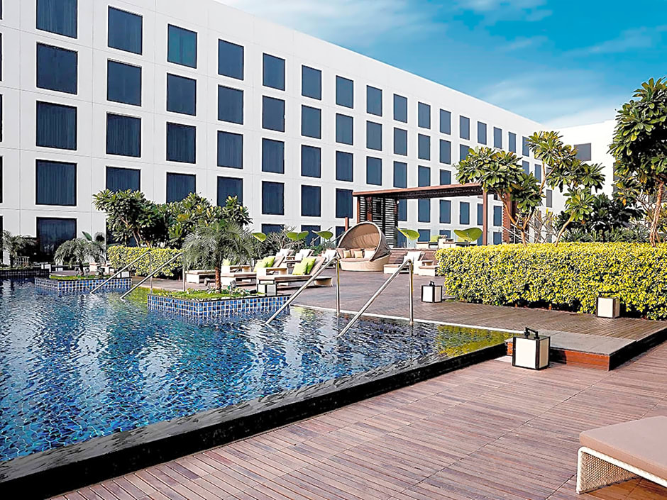 Das moderne Airport Hotel liegt 2 km vom Internationen Airport von Delhi entfernt und bietet alle Annehmlichkeiten eines 5 Sterne Hotels. Das 200 m von der U-Bahn-Station Delhi Aerocity entfernte Pullman New Delhi Aerocity bietet 6 gastronomische Einrichtungen und eine 24*7-Bar. Das Hotel verfügt über ein Pullman Spa & Salon und einen Aussenpool, der in den Wintermonaten temperiert ist.