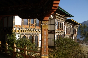 Ihre Reise führt Sie in Richtung Osten über den 3140 m hohen Dochu La. Geniessen Sie die phantastische Aussicht auf die Bergkulisse des östlichen Himalaya. Die Fahrt führt durch Bergregenwald und dann vorbei an fruchtbaren Terrassenfeldern, auf welchen hauptsächlich roter Reis angebaut wird, nach Punakha. Der gleichnamige Dzong liegt malerisch beim Zusammenfluss des Mo Chu und Pho Chu.